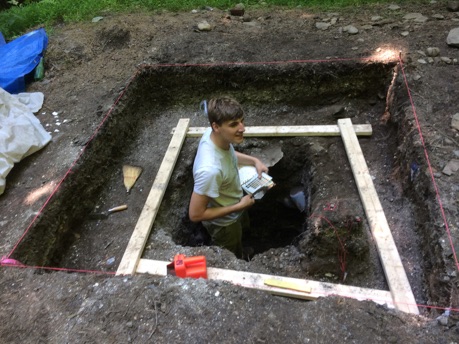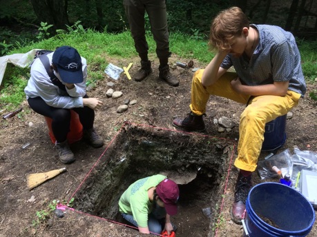 This summer most of the fieldwork took place at a site named the Woods Site. Each field day started with getting the van ready and driving from Vassar College to Historic Hyde Park. After pulling off to an unpaved road, gathering all the gear, we’d begin our 10 minute hike to the site.