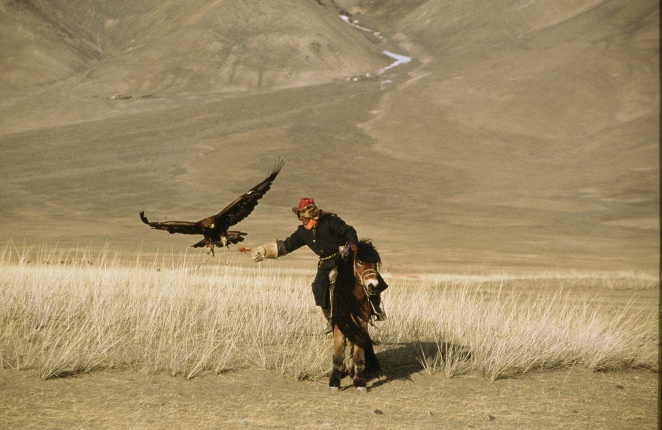 Description: A Kazakh falconer hunts