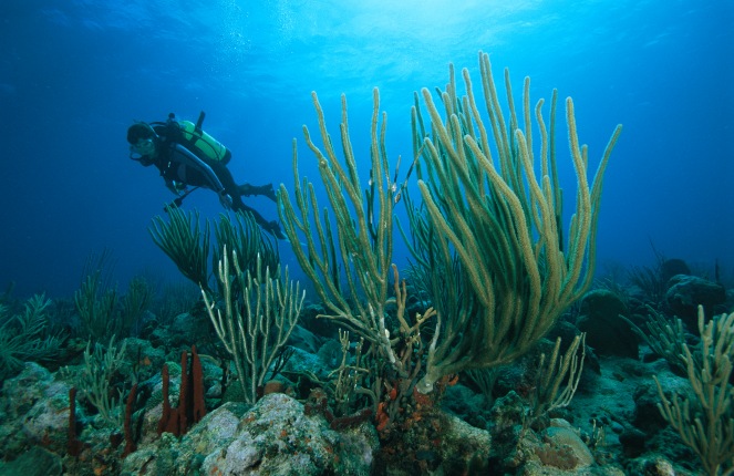 Description: A diver exploring a