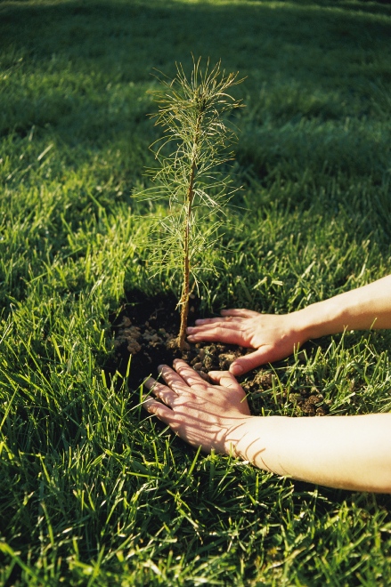 A person plants a tree