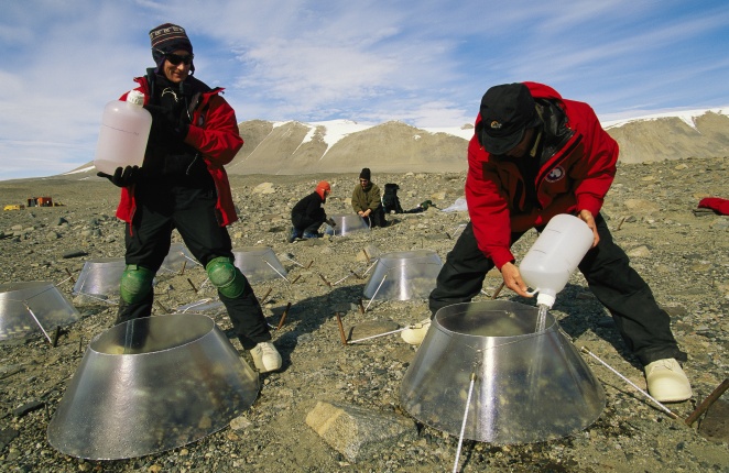 Description: Scientists measure snow