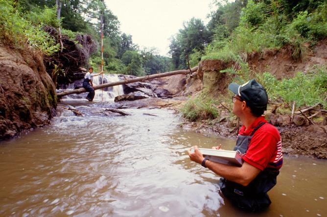 water rushing over a headcut. Photo by Scott Bauer.